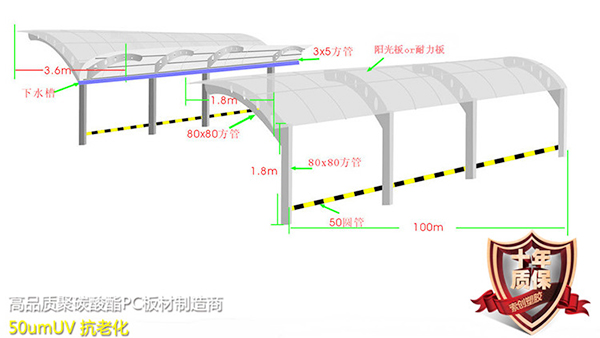 • 合肥新站昊天園1200平方5毫米透明耐力板車庫進(jìn)出口
